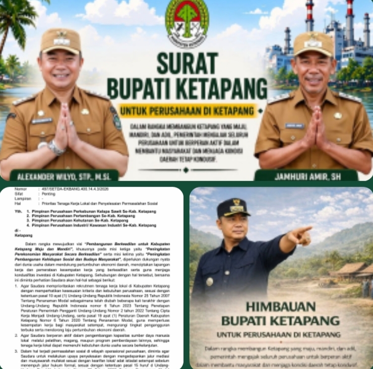 Penegasan tersebut tertuang dalam Surat Bupati Ketapang Nomor: 500.15/XXX/DISNAKERTRANS-C dengan Perihal: Prioritas Tenaga Kerja Lokal dan Penanganan Permasalahan Sosial, yang ditujukan kepada pimpinan perusahaan sektor perkebunan kelapa sawit, pertambangan, kehutanan, serta industri dan kawasan industri di Kabupaten Ketapang.