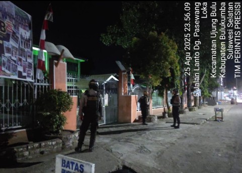 BULUKUMBA | DETIKREPORTASE.COM – Untuk memastikan keamanan di wilayah hukum Polres Bulukumba, Tim Patroli Presisi Sat Samapta melaksanakan patroli malam pada Senin (25/8/2025). Sasaran kegiatan difokuskan ke masjid dan sekolah yang dinilai rawan tindak kejahatan. Langkah ini diambil sebagai bentuk antisipasi terhadap potensi aksi pencurian. Petugas mendatangi sejumlah masjid dan sekolah, sekaligus memberikan imbauan kepada pengurus serta penjaga malam untuk lebih waspada.