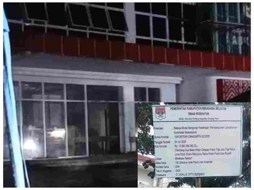 MINAHASA SELATAN | DETIKREPORTASE.COM – Pembangunan Laboratorium Kesehatan di Kabupaten Minahasa Selatan (Minsel), Provinsi Sulawesi Utara, Tahun Anggaran 2025, hingga kini menuai sorotan masyarakat. Proyek yang bersumber dari Dana Alokasi Khusus (DAK) Pusat TA 2025 tersebut diketahui belum rampung meski telah dikenakan **Tuntutan Ganti Rugi (TGR)** terhadap pihak kontraktor karena keterlambatan dan dugaan penyimpangan pekerjaan.