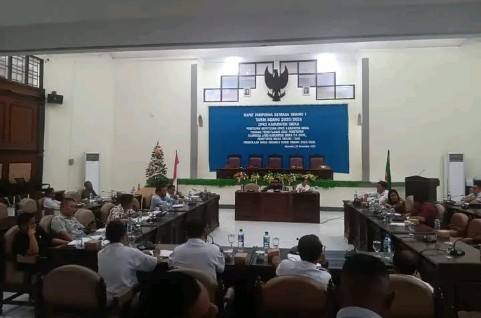 Fhoto : Ketua DPRD Sikka Stefanus Sumandi memimpin Rapat Dengar Pendapat bersama jajaran Pemerintah Kabupaten Sikka terkait percepatan pembangunan Koperasi Merah Putih di ruang sidang DPRD Sikka, Maumere.
