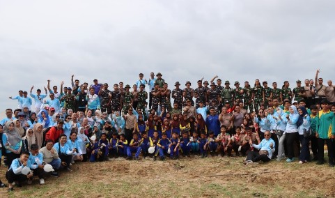 Pelajar dan aparat bersatu membersihkan kawasan pantai
