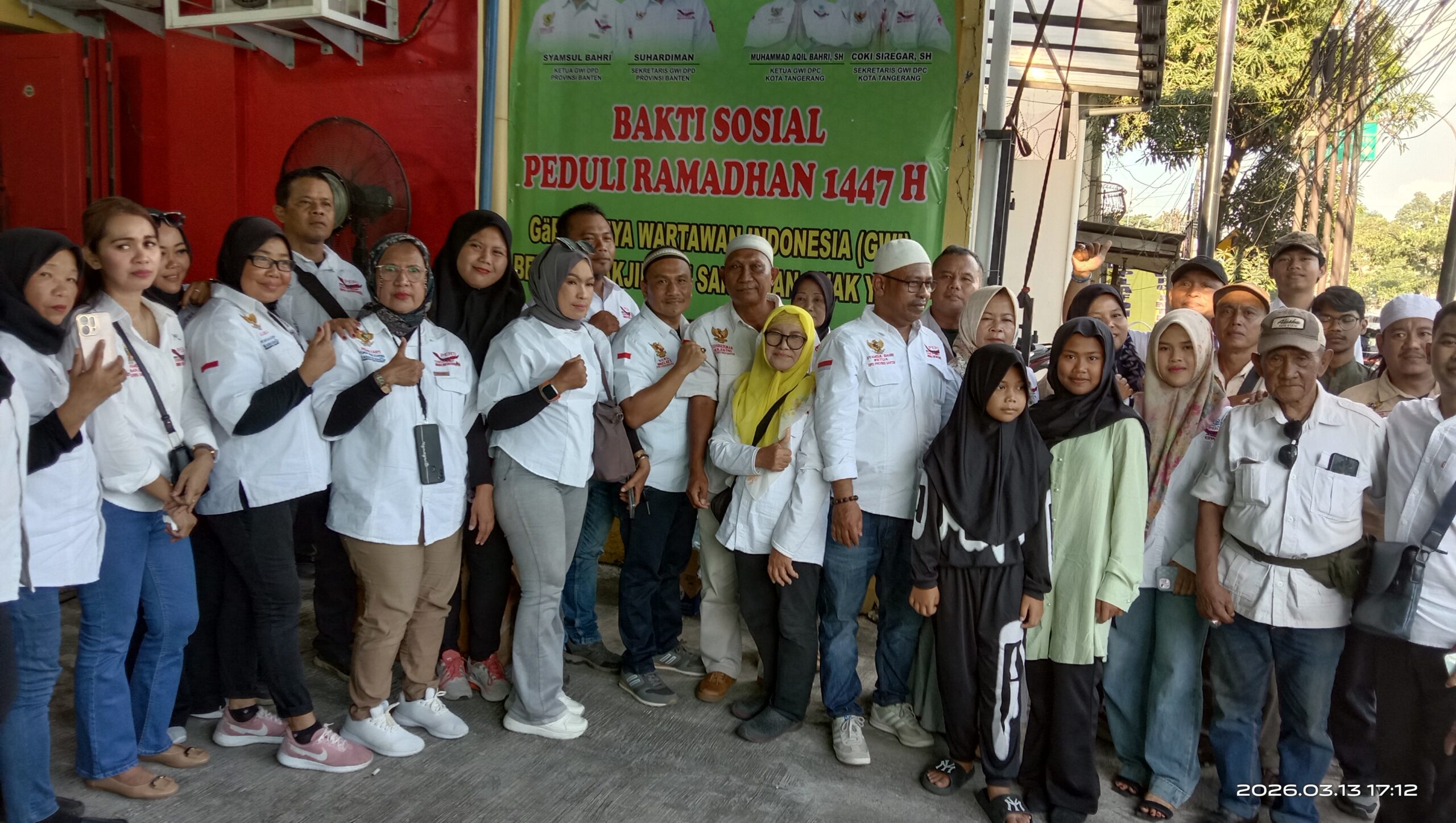 Tangerang Kota, DetikReportase.com – Organisasi Gabungnya Wartawan Indonesia (GWI) menggelar kegiatan sosial berupa berbagi takjil dan santunan kepada anak yatim dalam rangka menyemarakkan bulan suci Ramadan 1447 Hijriah, di Gedung GWI Jalan Veteran Tangerang Kota. Kegiatan ini menjadi wujud kepedulian insan pers terhadap masyarakat yang membutuhkan, sekaligus mempererat tali silaturahmi di tengah suasana penuh berkah, Jum’at (13/03/2026)