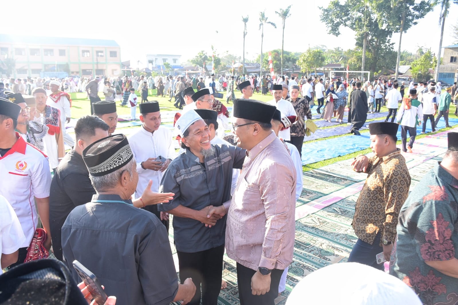 “Oleh karena itu, zakat fitrah menjadi sarana agar seluruh umat dapat merasakan kebahagiaan di hari yang suci ini,” ujar khatib, Dr H Al Ahyu MA dalam ceramahnya pada Salat Idul Fitri 1 Syawal 1447 Hijriah Pemerintah Kabupaten (Pemkab) Deli Serdang di Lapangan Bola Kaki Sei Semayang, Jalan Perintis Kemerdekaan, Kecamatan Sunggal, yang dihadiri Bupati Deli Serdang, dr H Asri Ludin Tambunan dan Wakil Bupati, Lom Lom Suwondo SS, Sabtu (21/3/2026).
