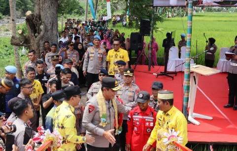 Sekitar pukul 11.30 WITA, Kapolda Sulsel beserta rombongan tiba di Desa Watu dan disambut secara resmi oleh unsur Forum Koordinasi Pimpinan Daerah (Forkopimda) Kabupaten Soppeng. Penyambutan berlangsung khidmat dan penuh nuansa budaya lokal melalui prosesi pengalungan bunga, tarian Paduppa, serta silaturahmi dengan tokoh adat dan masyarakat setempat.