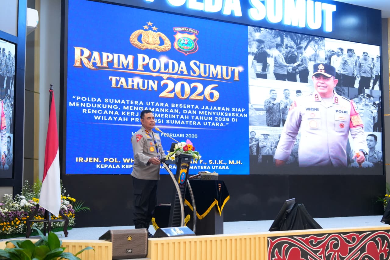 Rapim Polda Sumut Tahun 2026 ini mengusung tema “Polda Sumut beserta jajaran yang Presisi siap mendukung, mengamankan, dan menyukseskan Rencana Kerja Pemerintah 2026 di Wilayah Provinsi Sumatera Utara.” Kegiatan ini juga diisi dengan pemberian materi oleh Pejabat Utama Polda Sumut serta diskusi mengenai mitigasi dan solusi penanganan kasus menonjol dan berita viral di media sosial.(“””)