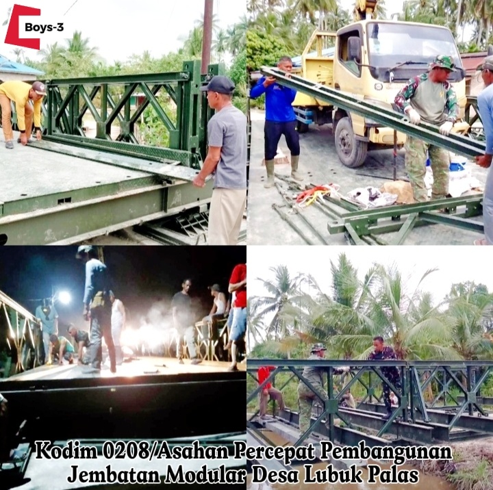 Upaya percepatan pembangunan infrastruktur terus digenjot jajaran Kodim 0208/Asahan dengan mengerjakan pembangunan jembatan modular di Desa Lubuk Palas, Kabupaten Asahan, Sumatera Utara, secara siang dan malam. Langkah ini dilakukan guna memastikan akses transportasi masyarakat segera pulih dan aktivitas ekonomi warga kembali bergerak optimal.