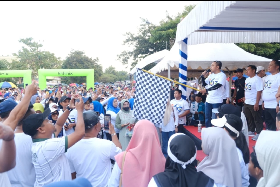 Dalam sambutannya, Bupati menyampaikan bahwa kegiatan Jalan Santai Bahagia tidak hanya menjadi sarana olahraga dan hiburan, tetapi juga sebagai momentum untuk memperkuat silaturahmi antara pemerintah dan masyarakat.