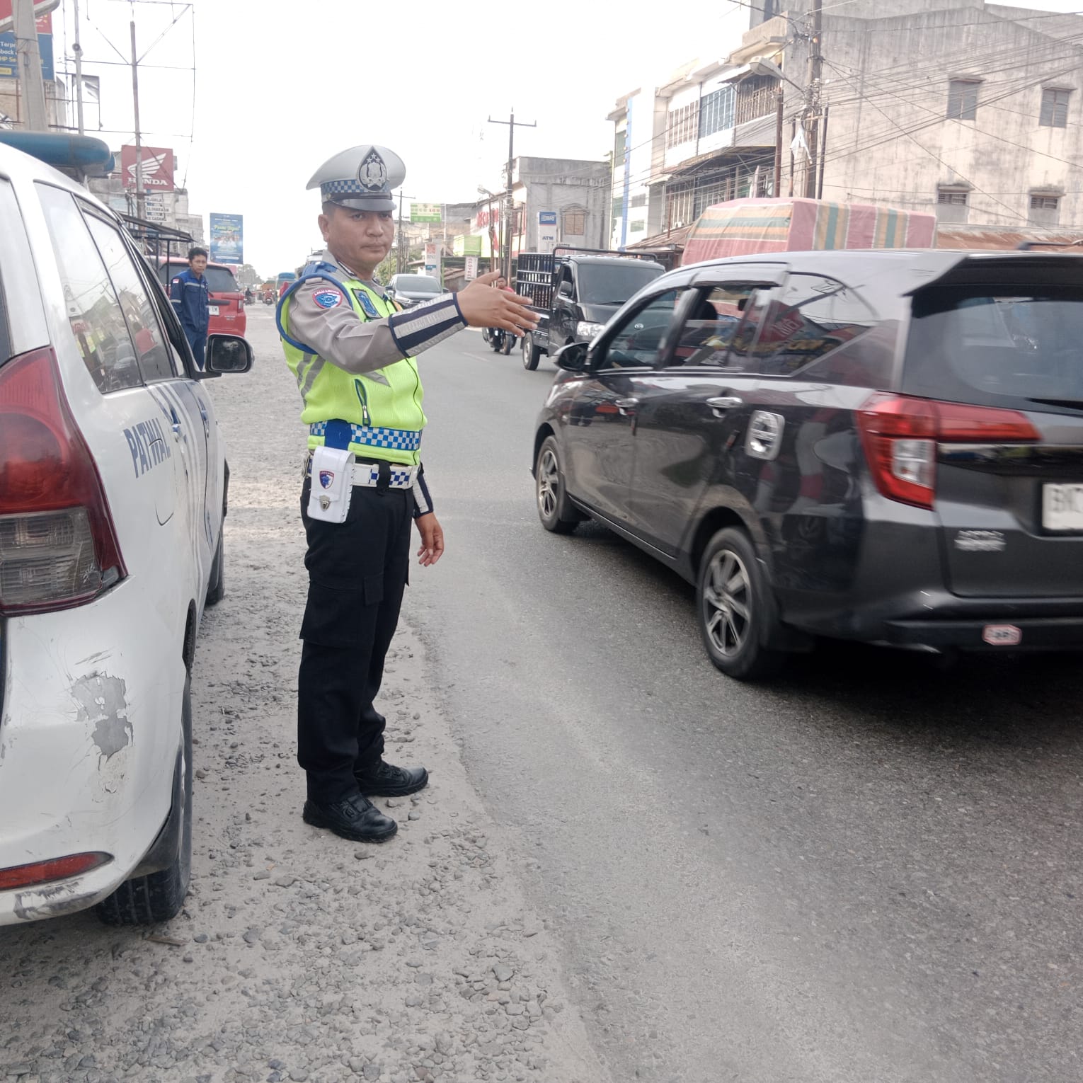 Pastikan Arus Lalu Lintas Kondusif, Sat Lantas Polres Batu Bara Kawal Titik Padat Jalinsum Indrapura