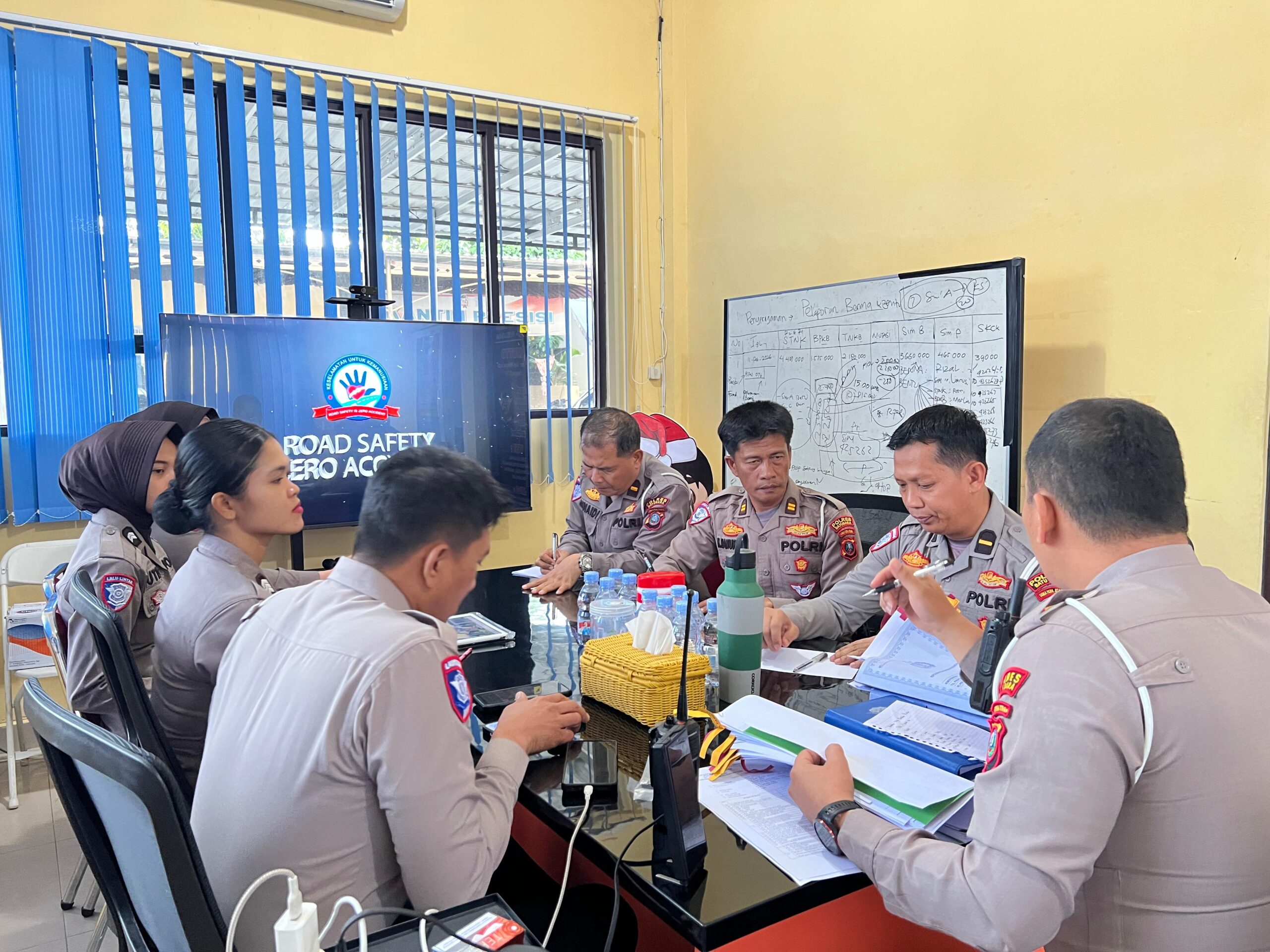 Menjelang pelaksanaan agenda besar pengamanan jalur mudik, Satuan Lalu Lintas (Sat Lantas) Polres Batu Bara menggelar rapat Analisis dan Evaluasi (Anev) kinerja di Ruang Anev Satlantas Polres Batu Bara, Senin (02/03/2026).