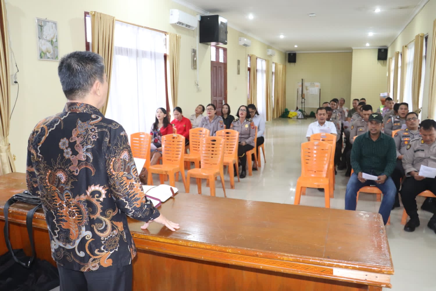 Sementara itu, bagi personel beragama Kristen, kegiatan Binrohtal dilaksanakan di Gedung Aula Jasmin Polres Langkat dengan mengangkat tema “Berlomba dengan Tekun dalam Iman” yang diambil dari Ibrani 12:1-2.