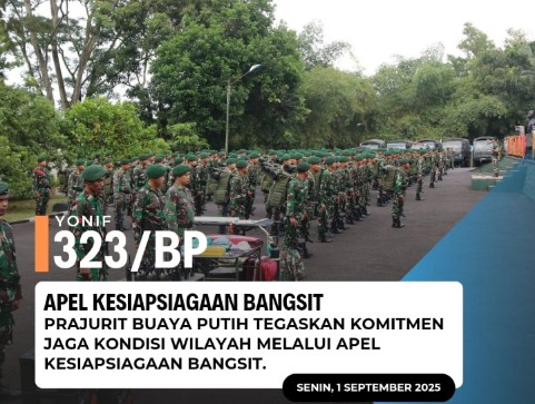 Apel kesiapsiagaan Bangsit membuktikan bahwa Yonif 323/Buaya Putih selalu berada di garis depan dalam menjaga kondusivitas wilayah. Keberadaan mereka bukan hanya untuk mengantisipasi ancaman keamanan, tetapi juga untuk merawat harmoni sosial yang ada di tengah masyarakat. Sejarah panjang batalyon ini memperlihatkan kiprah yang konsisten dalam menjaga stabilitas. Dari operasi militer hingga tugas pengamanan di wilayah rawan, Buaya Putih dikenal sigap, disiplin, dan berjiwa sosial. Tradisi itu kembali ditegaskan lewat apel ini, yang menjadi bukti nyata komitmen mereka.