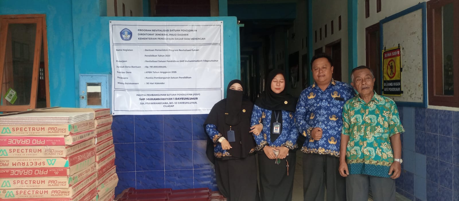 CILACAP | DETIKREPORTASE.COM – Dunia pendidikan di Kabupaten Cilacap kembali mendapatkan angin segar. Kali ini, **SMP Muhammadiyah 1 Dayeuhluhur** yang berlokasi di Jalan Prawiranegara No. 52, Kecamatan Dayeuhluhur, mendapat bantuan **program revitalisasi satuan pendidikan** dari pemerintah pusat. Bantuan tersebut bersumber dari **Anggaran Pendapatan dan Belanja Negara (APBN) Tahun 2025** dengan total nilai sebesar **Rp781.000.000,00**. Program ini secara resmi mulai dijalankan pada Senin, 10 November 2025, dan akan dikelola langsung oleh Panitia Pembangunan Satuan Pendidikan (P2SP) dengan alokasi waktu pelaksanaan selama 90 hari kalender. Revitalisasi ini menjadi salah satu bentuk komitmen pemerintah dalam mendorong pemerataan pendidikan dan peningkatan kualitas fasilitas sekolah di daerah terpencil maupun perbatasan.