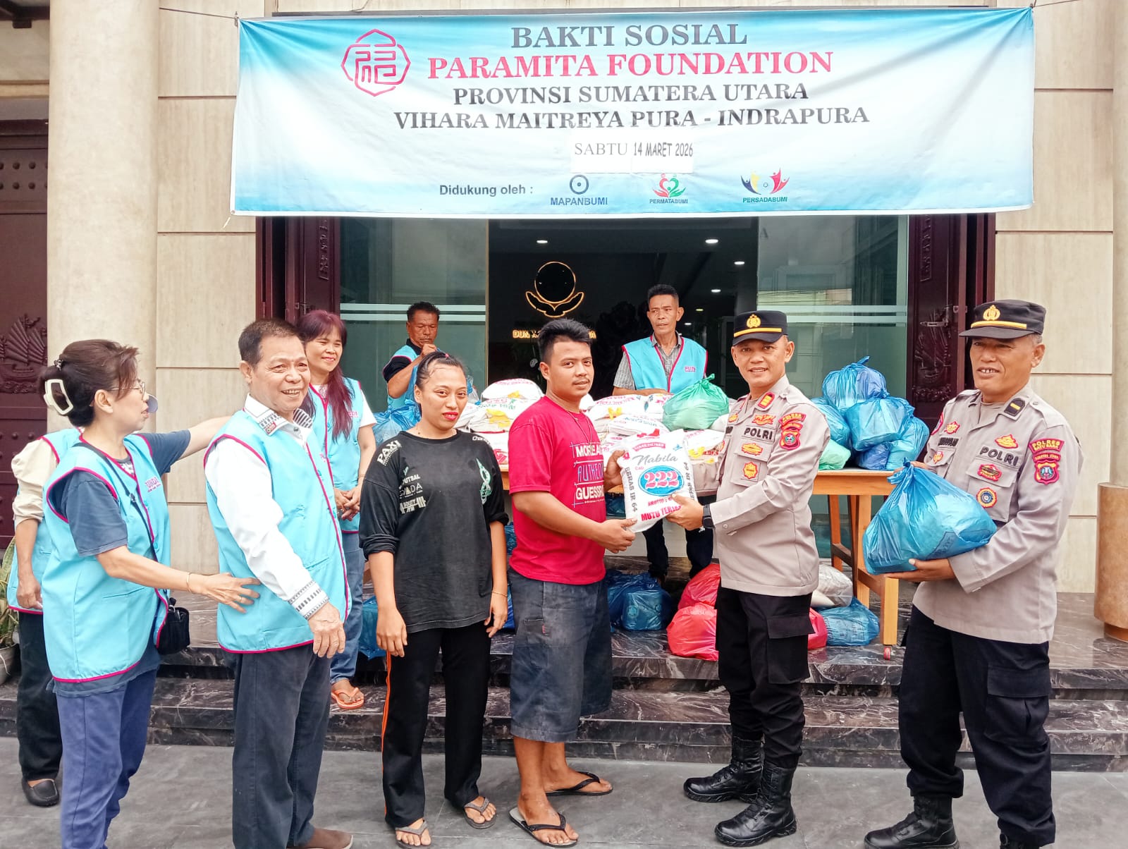Semangat toleransi dan kepedulian sosial menyambut Hari Raya Idul Fitri 1447 Hijriah terlihat kental di wilayah hukum Polsek Indrapura, Kabupaten Batu Bara. Pada Sabtu (14/03/2026), Polsek Indrapura bersinergi dengan Paramita Foundation Vihara Maitreyapura Indrapura menggelar bakti sosial pembagian paket sembako kepada masyarakat yang membutuhkan.