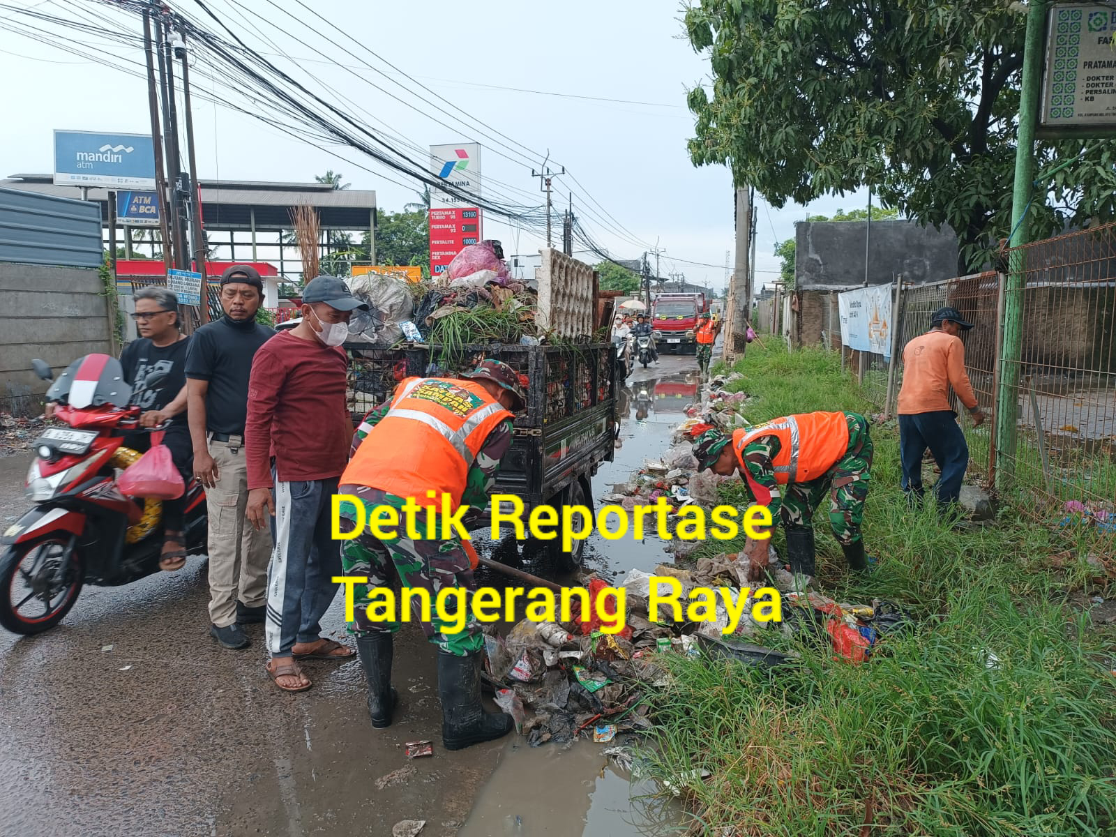 Kodam Jaya, Tigaraksa, Detikreportase.com – Satgas Sampah Koramil 01/Teluknaga Kodim 0510/Tigaraksa bersama Polsek Teluknaga dan Pemerintah Kecamatan Teluknaga melaksanakan kegiatan pembersihan sampah di sepanjang Jalan Selembaran Raya, Desa Kampung Melayu Timur, Kecamatan Teluknaga, Kabupaten Tangerang, Sabtu (28/03/2026).
