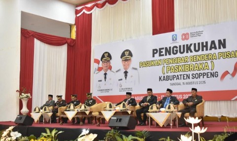 SOPPENG, SULSEL | DETIKREPORTASE.COM – Gedung Serbaguna La Patau, Kabupaten Soppeng, Sulawesi Selatan, bergemuruh dengan semangat kebangsaan pada Jumat (15/8/2025). Sebanyak 73 putra-putri terbaik Soppeng resmi dikukuhkan sebagai Pasukan Pengibar Bendera Pusaka (Paskibraka) Tahun 2025.