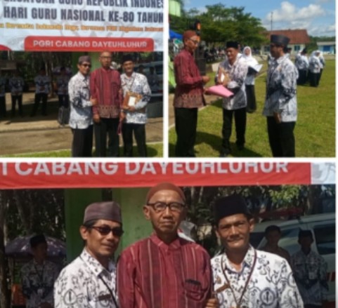 Salah satu momen paling berkesan dalam upacara HUT PGRI tahun ini adalah pemberian penghargaan kepada **Basuki, S.Pd**, sosok guru senior yang pernah menjabat sebagai Pengawas SD se-Kecamatan Dayeuhluhur. Penghargaan tersebut diberikan langsung oleh Ketua PGRI Dayeuhluhur sebagai bentuk apresiasi atas dedikasi, pengabdian panjang, serta kontribusi beliau dalam memajukan dunia pendidikan di wilayah tersebut.Para guru yang hadir memberikan tepuk tangan meriah, menandai rasa hormat dan kekaguman atas jejak panjang pengabdian yang telah ditorehkan Basuki selama puluhan tahun.
