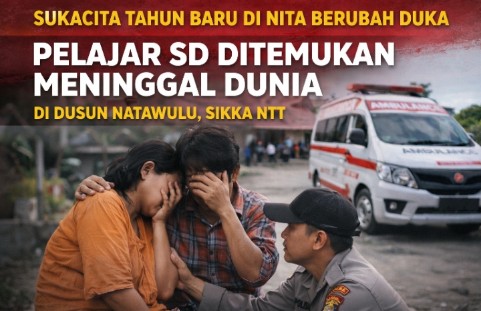 SIKKA | DETIKREPORTASE.COM – Sukacita warga Dusun Natawulu, Desa Ladogahar, Kecamatan Nita, Kabupaten Sikka, Nusa Tenggara Timur, dalam merayakan Tahun Baru 2026 berubah menjadi duka mendalam. Seorang pelajar Sekolah Dasar berinisial MGH, yang masih duduk di kelas V, ditemukan meninggal dunia di sekitar kediaman keluarganya pada Kamis (1/1/2026) sekitar pukul 10.40 WITA.