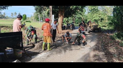 > “Kegiatan ini bertujuan untuk meningkatkan kebersihan lingkungan serta memperbaiki akses jalan warga. Kami bersyukur antusiasme warga sangat tinggi dan menunjukkan bahwa semangat kebersamaan masih kuat di tengah masyarakat,” ujar Peltu Juanda.