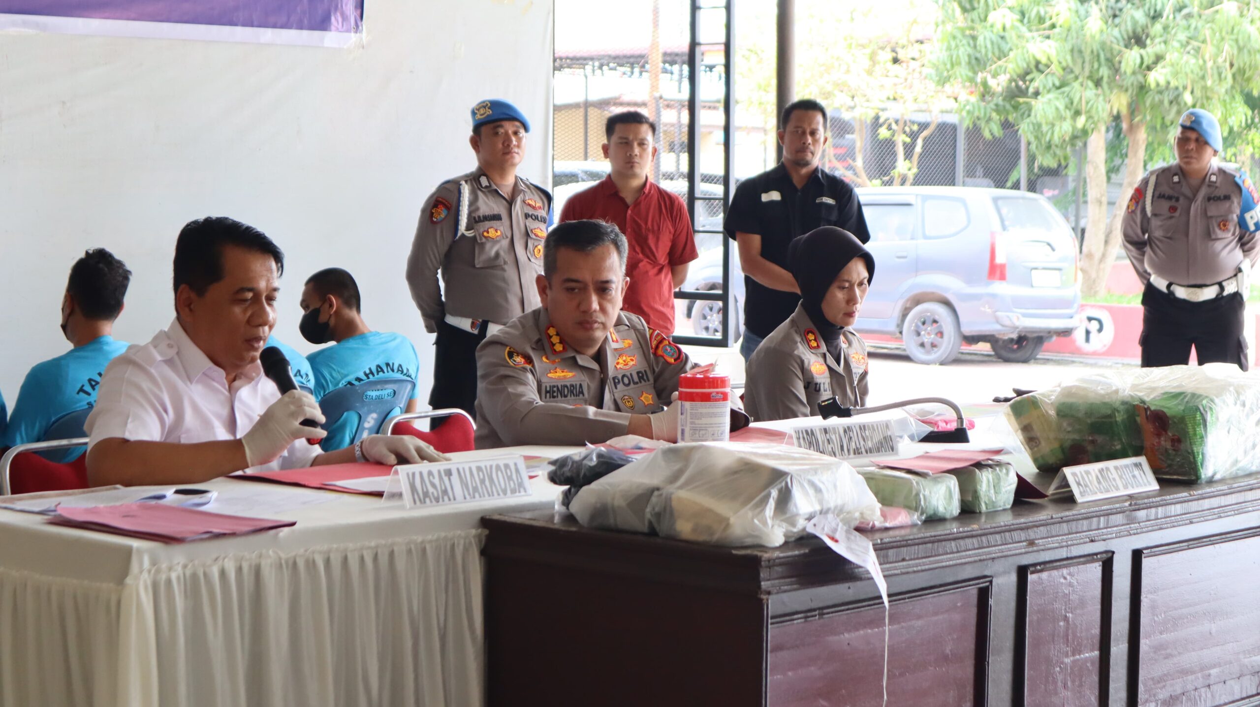 “9 tersangka yang kami amankan dalam 2 bulan terakhir ini rata rata adalah kurir yang di duga juga sebagai pengguna. Mereka kami tangkap di tempat dan waktu yang berbeda, dengan modus dan alat bukti yang mengarah pada peredaran aktif di tengah masyarakat,” ungkap Kapolres